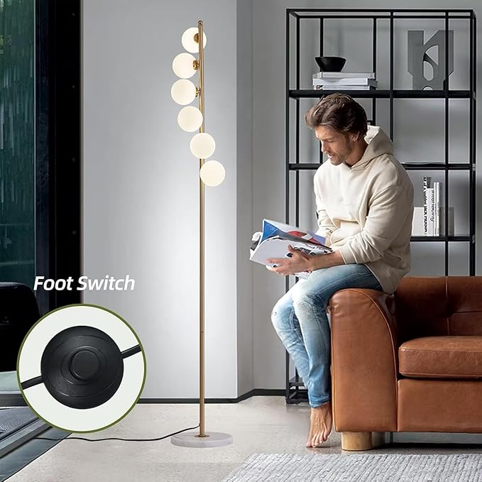 - 【Mid Century Modern Floor Lamp】Equipped with 6 frosted glass lampshades (we provide 6 LED G4 light sources for free), emitting warm and comfortable light, perfect for reading or relaxing. You can use the foot switch to switch between three different types of light (warm light, natural light, cold light),Not dimming