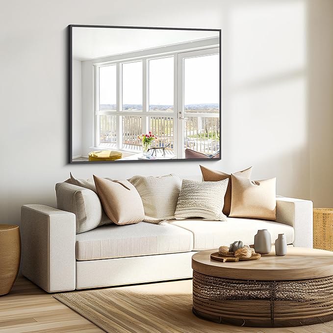 BONEWEI Bathroom Mirror,36x40 inch Wall Mirror for Bathroom Wall Mounted Black Rectangle Square Corner Mirrors, Black Bathroom Mirror for Living Room, Farmhouse, Bedroom Entryway, Horizontal/Vertical