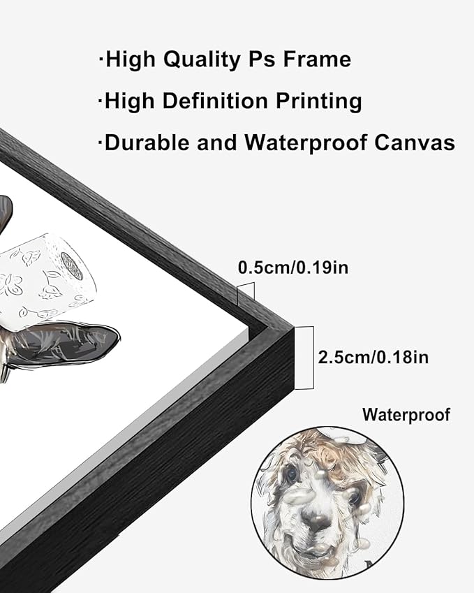 - 【Premium Materials】 Immerse yourself in the superior craftsmanship of this high-quality framed canvas wall art. Printed on premium canvas and using the finest fade-resistant ink with a waterproof film on it to ensure the colors stay vibrant and lasting. And each bathroom painting for wall decor is stretched tightly over a wooden frame, ensuring the canvas is stretched and does not buckle. We insist on using the best materials and workmanship to ensure its durability