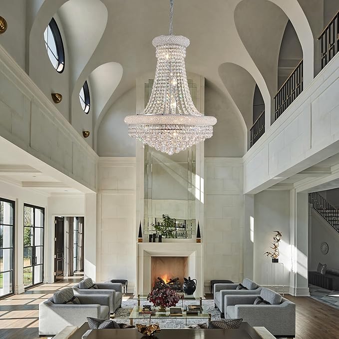 - 【Empire Crystal Chandeliers】:The dimension of Crystal Chandelier is Height 30.7"*Diameter 23.6", You can adjust the length of chains and wires according to your needs(Chain length is 59"), chandelier net weight approx 48 pounds. Suitable for living room, dining room, Foyer, Entryway, Hallway, banquet hall, and central hall
