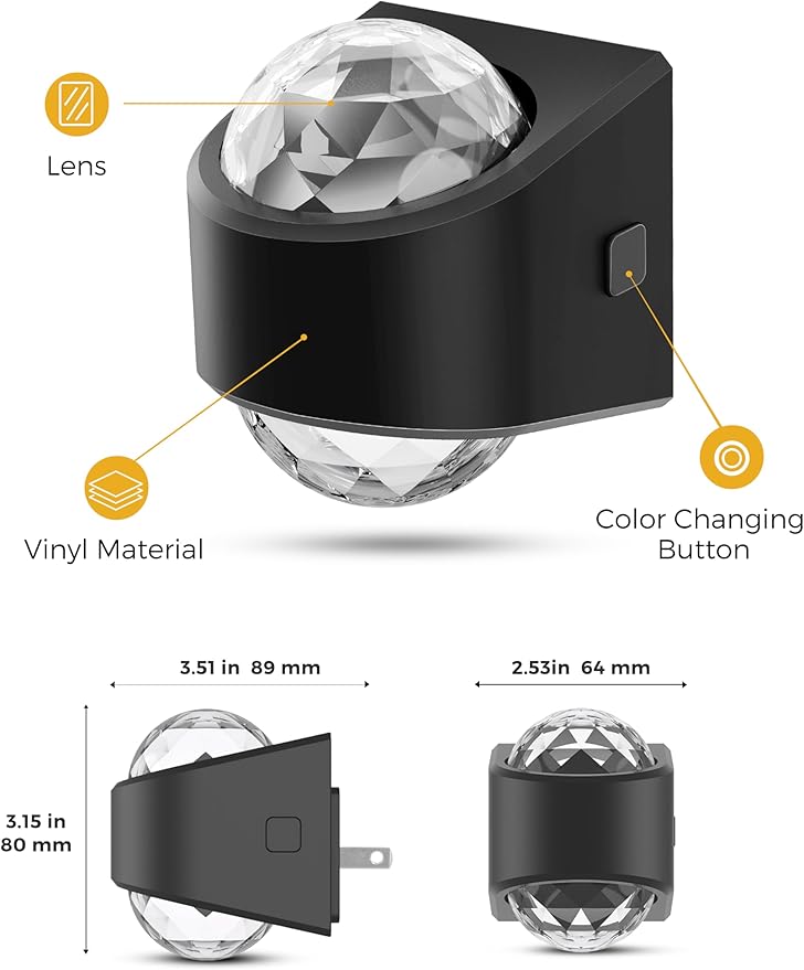 - Versatile Starry Night Light: This plug in night light built-in double disco ball, projector emitting light both upwards and downwards, creating a magical ambiance perfect for kids'room, playroom, home decor,parties and gatherings. It transforms any space into a captivating starlit scene.