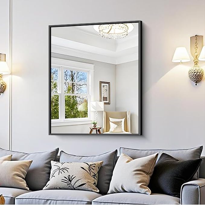 KOCUUY Black Bathroom Mirror, 30x36 Inch Rectangle Mirror for Over Sink, Modern Decorative Wall Mirror for Bedroom Living Room Bathroom, Hang Horizontal/Vertical