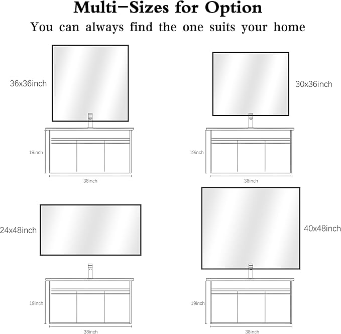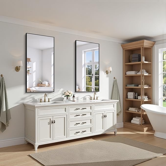 - MODERN DESIGN : KOCUUY 24x48 black vanity mirror is with innovative design which gives the wall mirror a more fashion feel. With a classic square corner, the wall mounted mirror allows for creativity and functionality in bathroom, bedroom, entryway and anywhere else. Let your living space be an expression of your personal style, not limited to modern or contemporary, farmhouse or industrial
