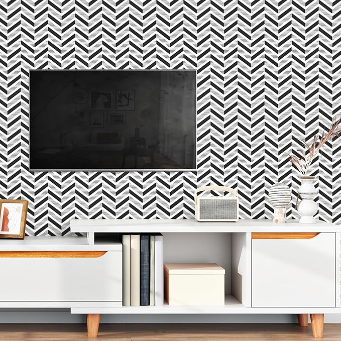- FEATURES: This herringbone wallpaper peel and stick has strong coverage and does not tear easily. The renter friendly wallpaper is very easy to install. Grid lines on the back of the modern peel and stick wallpaper boho make it easy for you to cut accurately. Also, the geometric contact paper is removable and repositionable, oil resistant and easy to clean.