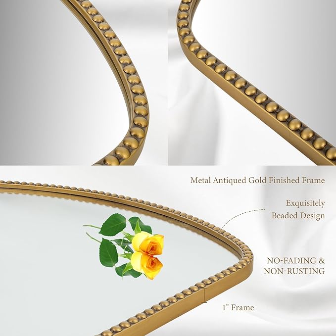 - Decorative Beaded Arch Mirror: This decorative wall mount mirror features arch shape and antique gold finish of the cute beaded design on the frame, which completes a classic-style decor.