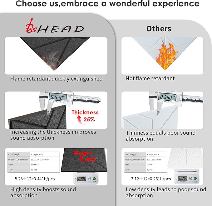 - 【Excellent Quality】: This wall soundproofing foam board is made of high-quality 100% polyester, odorless and flame retardant. There are no risks associated with spending long periods of time in a room with acoustic foam panels. And compared with traditional sound-absorbing panels, our products have higher thickness (25% thicker) and density (35% denser),which means better durability and sound absorption.