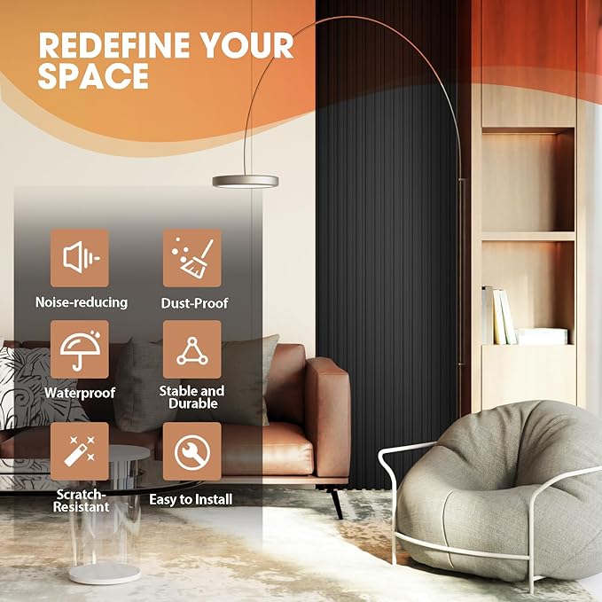 - 【Green & Safe】Crafted from a blend of recyclable plastic and wood fiber, our WPC slat wall panels are environmentally sustainable. They are free from harmful chemicals and toxins, ensuring a safe and healthy indoor environment for you and your family