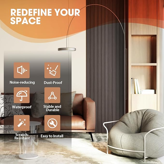 - 【Green & Safe】Crafted from a blend of recyclable plastic and wood fiber, our WPC slat wall panels are environmentally sustainable. They are free from harmful chemicals and toxins, ensuring a safe and healthy indoor environment for you and your family