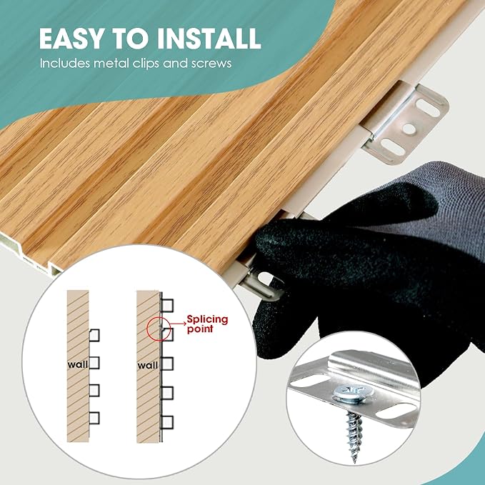 - 【Easy DIY】Our WPC wall panels are user-friendly and easy to install. Simply buckle them up, screw them in using the included accessories, and cut to size with any power saw if needed. Perfect for DIY enthusiasts of all skill levels