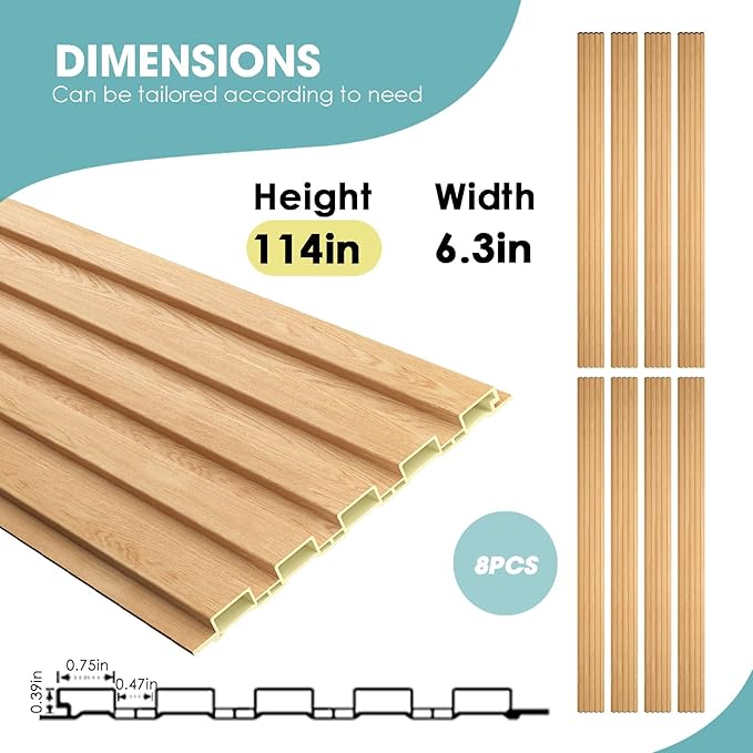 - 【Green & Safe】Crafted from a blend of recyclable plastic and wood fiber, our WPC slat wall panels are environmentally sustainable. They are free from harmful chemicals and toxins, ensuring a safe and healthy indoor environment for you and your family