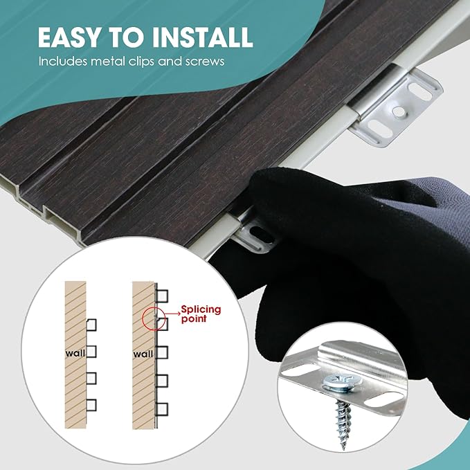 - 【Easy DIY】Our WPC wall panels are user-friendly and easy to install. Simply buckle them up, screw them in using the included accessories, and cut to size with any power saw if needed. Perfect for DIY enthusiasts of all skill levels