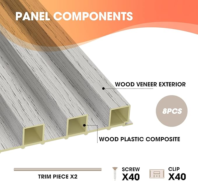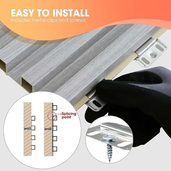- 【Easy DIY】Our WPC wall panels are user-friendly and easy to install. Simply buckle them up, screw them in using the included accessories, and cut to size with any power saw if needed. Perfect for DIY enthusiasts of all skill levels