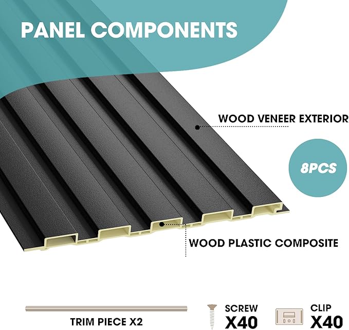 - 【Easy DIY】Our WPC wall panels are user-friendly and easy to install. Simply buckle them up, screw them in using the included accessories, and cut to size with any power saw if needed. Perfect for DIY enthusiasts of all skill levels