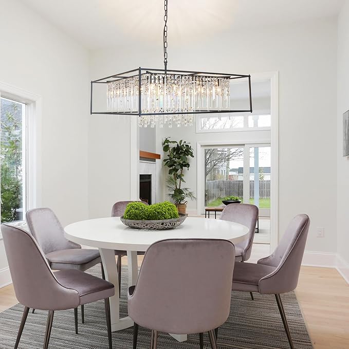 Modern Black Crystal Chandelier, 12-Light Square Pendant Lighting Fixture for Kitchen Island, Dining Room, or Living Room â Elegant Large Ceiling Light for Bedroom and Foyer (35.5")