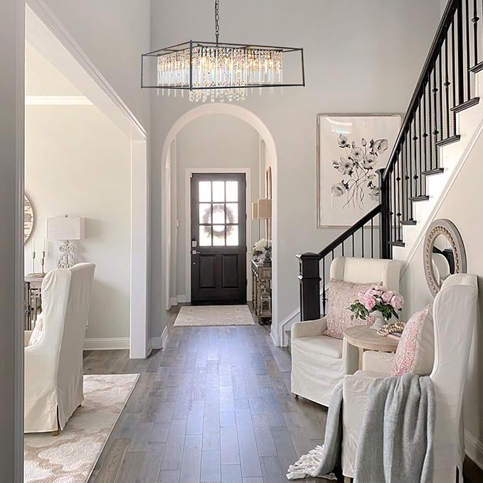 - [Easy To Install ]: This dining room crystal chandelier is easy to install, packing accessories include installation hardware, quick installation instructions and hanging crystals indicator chart. If you receive this contemporary crystal chandeliers with any problem or broken crystals, welcome to get back to us at once.