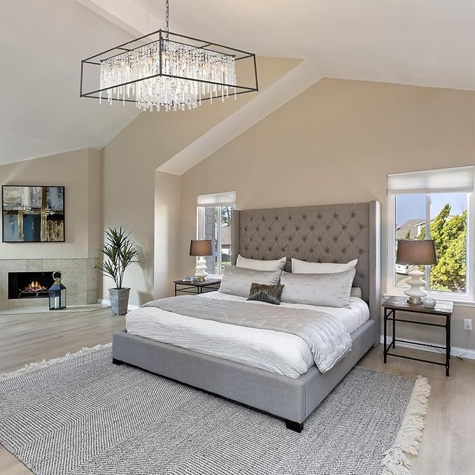 - [ Raindrop Design]: This black modern square crystal chandelier is brush matte black simple beautiful rectangle iron frame, adjustable height made it not only a pendant chandelier, but also a recessed ceiling light. Combining simple and farmhouse elements will create a wonderful atmosphere for your house.