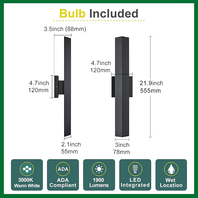 - 【Dimensions / Bulbs】: Measures 4.7-inch width by 21.9-inch height and 3.5-inch depth.The slim design is ADA Compliant allowing for installation in commercial and public spaces requiring handicapped accessibility.With a built-in 20W integrated LED light source, there is no longer a need to purchase a light source, making this fixture easier and simpler to use, requiring essentially no maintenance.