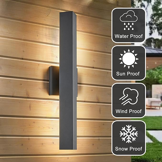 - 【Textured Black Finish】: Textured black fully sealed long V-shaped aluminum cover with rust-resistant, water-resistant. Allowing this wall sconce to be used in a variety of installation environments and climates.