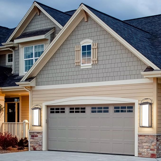 - 【Textured Black Finish】: The black textured finish elongated hardware welded frame with inlaid clear plate glass makes the whole lamp waterproof, dustproof, sunproof and windproof. The interior cream acrylic shade is better protected and is UV rated, giving the entire lamp a very generous and modern look.