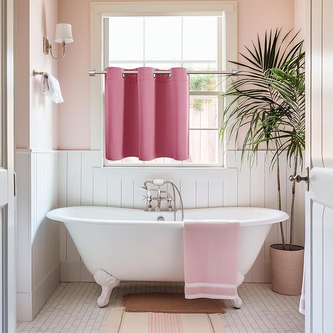ChrisDowa Blackout Curtains 36 Inches Long for Living Room, Grommet Thermal Insulated Room Darkening Curtains for Bedroom (1 Panel Set, Pink, 42W x 36L)