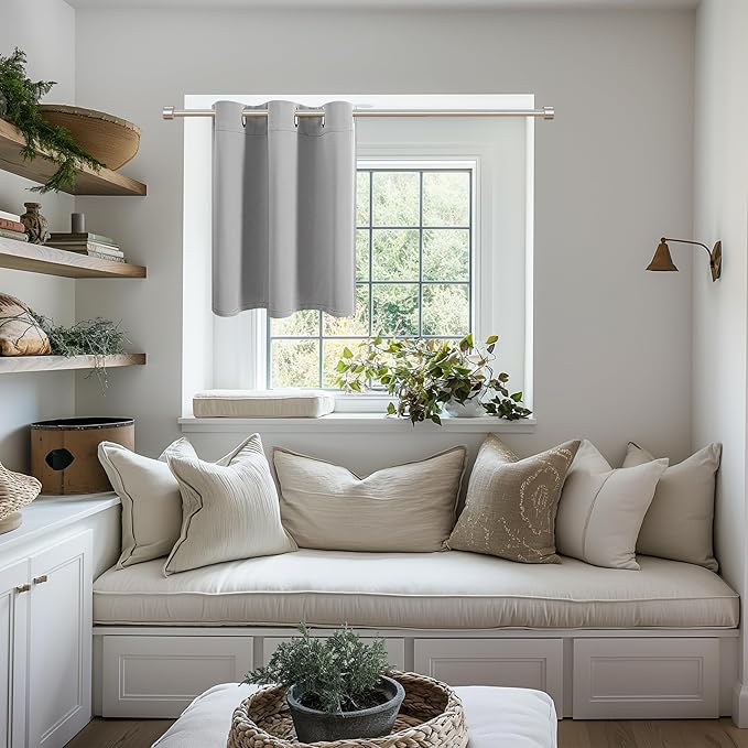 ChrisDowa Blackout Curtains 36 Inches Long for Living Room, Grommet Thermal Insulated Room Darkening Curtains for Bedroom (1 Panel Set, Light Grey, 52W x 36L)