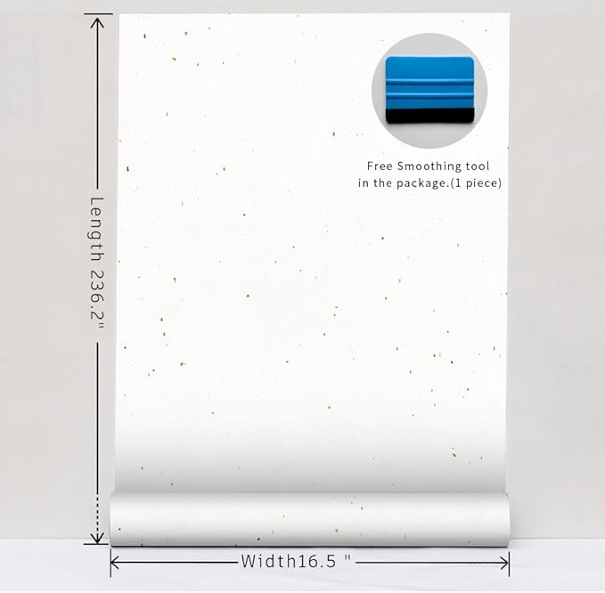 - Totally 4 layers of our material: 1.Waterproof and anti-stain protective layer. 2.Herbaceous Coffee&Silver powder fusion in paint. 3.Non-woven fabrics. 4.Self-adhesive sticker. Full size: width 16.5”x length 236.2",package size:3.38”x3.38”x17.1”. Free Smoothing tool in the package.(1 piece)