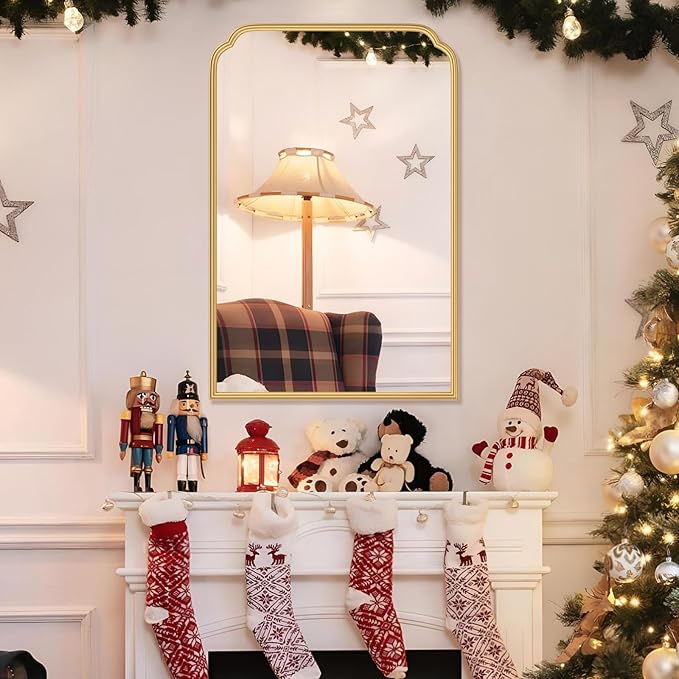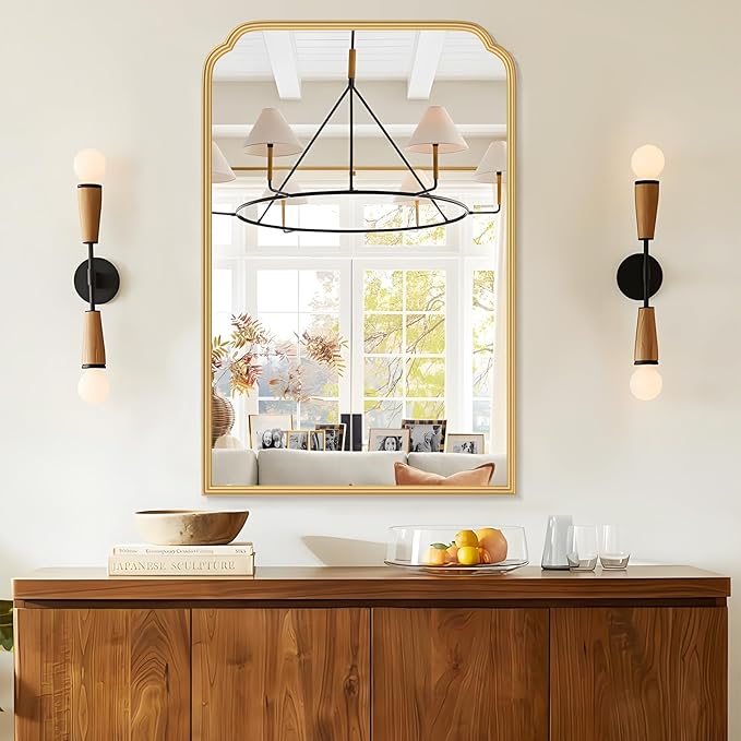 - 【A Unique Elegant-Looking Mirror 】:The gold bathroom mirror, overall design and the sleekness of the curves in the frame and it adds a classiness as opposed to a boring straight square mirror. A very versatile mirror that will raise the level of decor anywhere in the house. The rounded corners mirror is classic and will never go out of style.