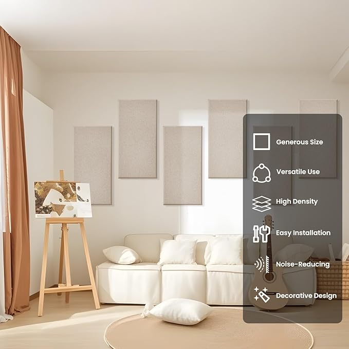 - Versatile & Decorative Noise Dampening Panels : These large, fabric-wrapped sound dampening wall panels offer effective sound proof panels, theaters, gaming rooms, cinemas, and offices. The elegant design of our sound absorbing foam enhances room aesthetics, integrating seamlessly with home or office decor for both functionality and style