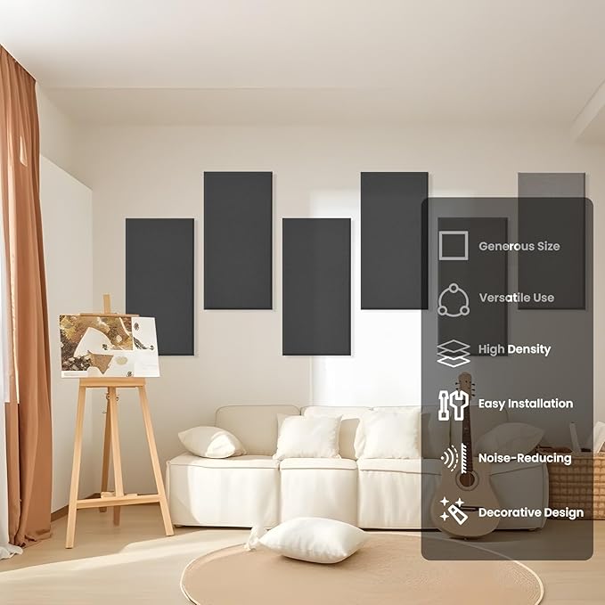 - Versatile & Decorative Noise Dampening Panels : These large, fabric-wrapped sound dampening wall panels offer effective sound proof panels, theaters, gaming rooms, cinemas, and offices. The elegant design of our sound absorbing foam enhances room aesthetics, integrating seamlessly with home or office decor for both functionality and style