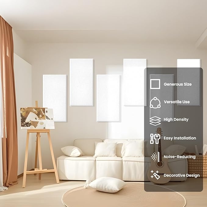 - Versatile & Decorative Noise Dampening Panels : These large, fabric-wrapped sound dampening wall panels offer effective sound proof panels, theaters, gaming rooms, cinemas, and offices. The elegant design of our sound absorbing foam enhances room aesthetics, integrating seamlessly with home or office decor for both functionality and style