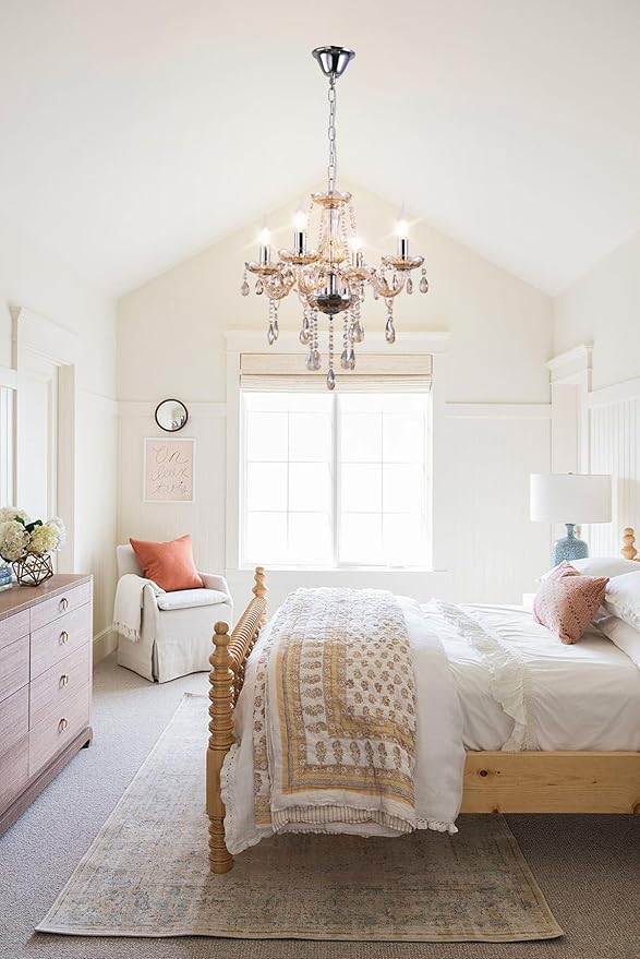 - 【Ideal Decorative Choice】Our crystal chandelier are gorgeous and noble. When its 4 lights are illuminated, dazzling crystal chains and pendants provide an abundance of light. Transform a traditional room into a charming atmosphere.