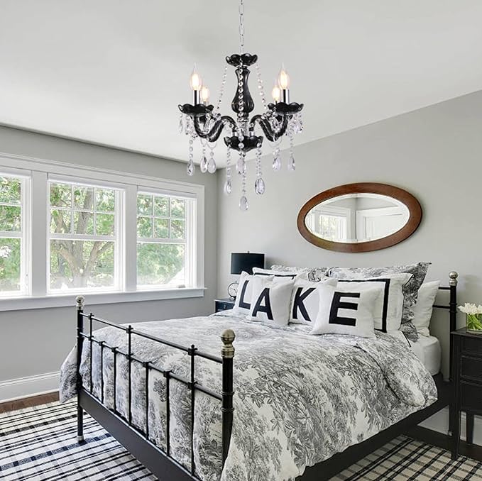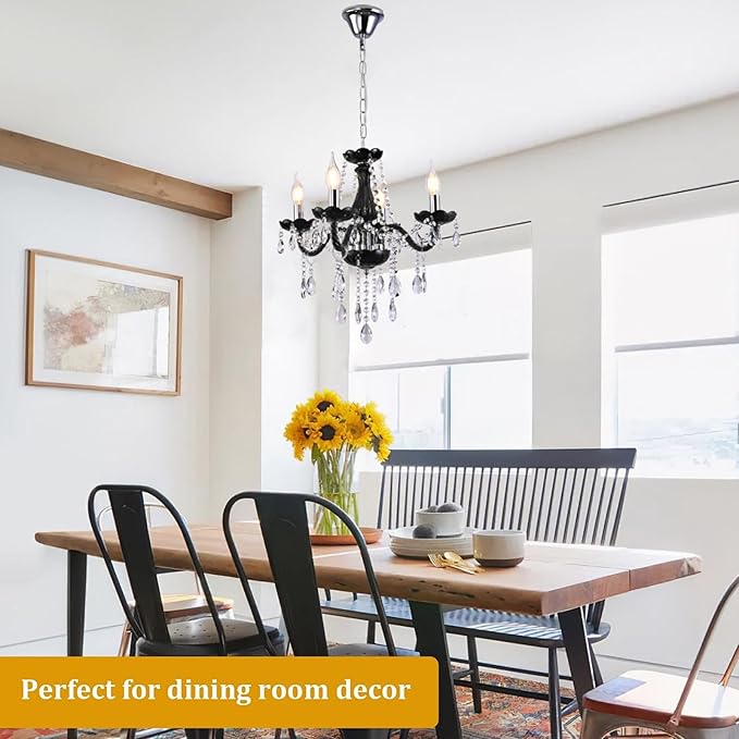 MALOSA Small Black Crystal Chandeliers,4 Lights Mini Black Glass Chandelier for Living Room,Bedroom,Dining Room,Kitchen Island.