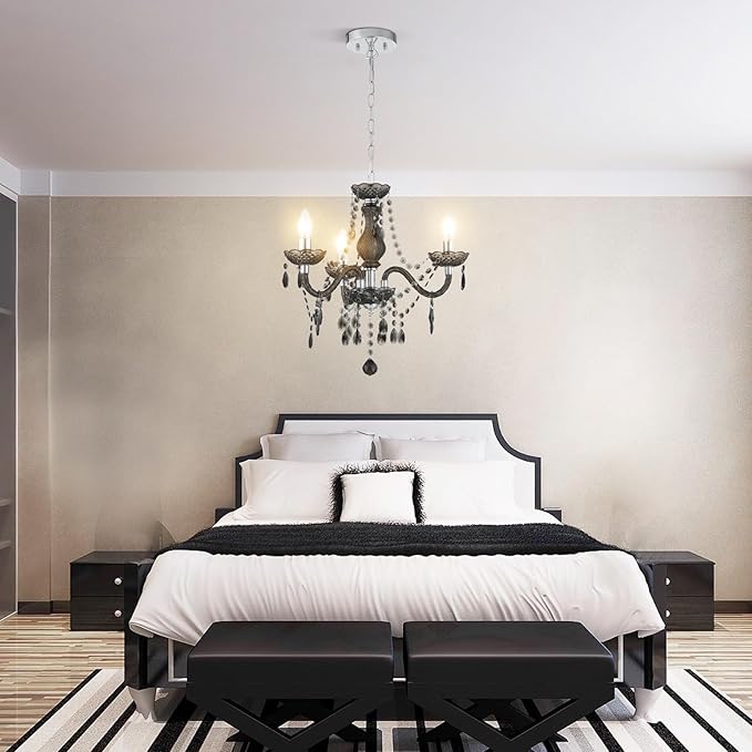 Luvkczc Black Chandelier Small Crystal Chandeliers Lighting Mini Acrylic Chandelier 3 Light Modern Pendant Light Fixtures for Restaurant, Bar, Dining Room, Bathroom