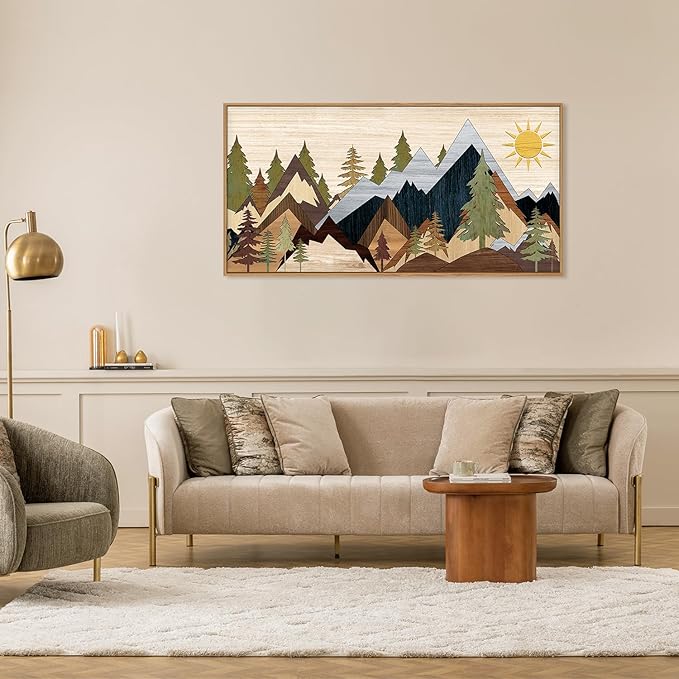 - 【Mountain Pine Tree Framed Canvas Wall Art】This mountain pine tree framed canvas wall art set capture the serene beauty of a natural forest landscape, complete with majestic mountains, lush trees, and the radiant sun, all represented in a woodcut that bursts. It transports you to the heart of nature's tranquility, making it an ideal choice for room decoration!
