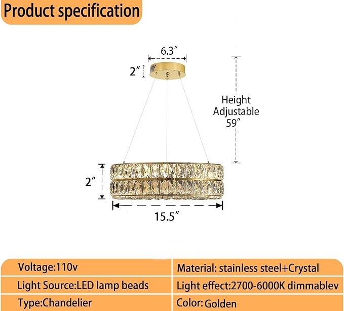 - ✨【Dimmable LED Crystal Ring Chandelier】: Include Built-in 45 Watts High-quality LED ceiling lightstrip, Uo to 4050 lumins provides ample liaht.With 3-color temperature changing. Please notethat chandeliers have own dimmers (include),only can be used with reqular wall switches, and isnot compatible with home dimmer switches, You also can use remote(included) andAPP(Lampsmart pro) to switch color temperature as you like from 2700k-6000k and 5%-100%brightness adjustment.DC.Voltage=85-256V.