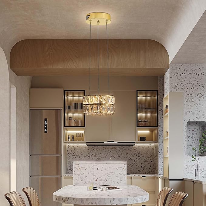 - ✨【Elegant Crystal Chandelier for Dining Room】High quality & contemporary design: This crystal chandelier hanging combine with three - sided clear crystal and stainless steel. Stainless steel design makes this crystal chandelier richer in refraction surface, K9 crystal faceted cut, as dazzling as diamond, that is modern and luxurious, ideal for furniture decoration lamps.