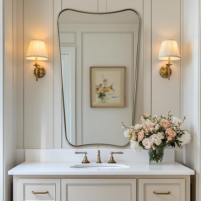 - 【Sophisticated Curved Design】: With captivating asymmetry and irregular shapes, this brushed gold bathroom mirror is a work of art. Whether you have a contemporary, minimalist, rustic, or eclectic bathroom decor, our gold irregular wall mirror effortlessly blends in, adding a touch of individuality and character to any space