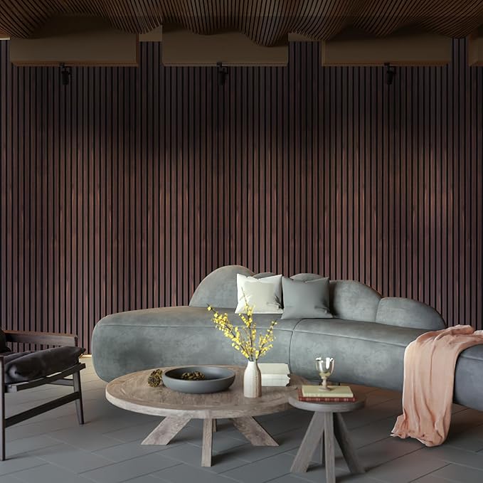 Art3dwallpanels Wood Slat Wall Panel, 108'' x 13'' Wood Panels for Wall 2 Pack 3D Soundproof Wall Panels, Large Acoustic Panels for Interior Ceiling and Wall Decor Noise Reduction,Walnut