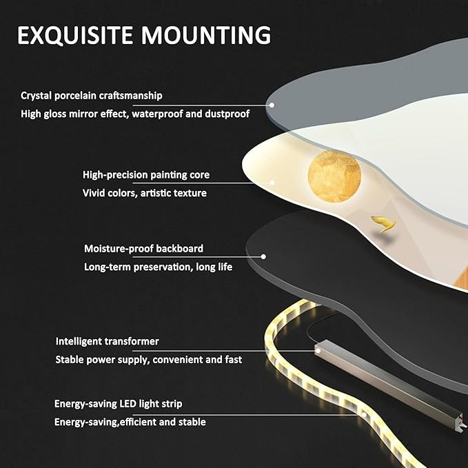 - LED LIGHTING: The unique decorative light art painting adopts high-efficiency warm-color LED light strips, making this wall sculpture more beautiful, 12V low voltage, soft light and eye protection, adding a sense of space atmosphere.