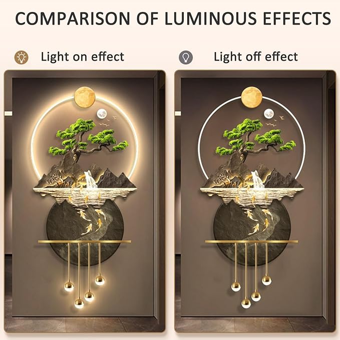 - LED LIGHTING: The unique decorative light art painting adopts high-efficiency warm-color LED light strips, making this wall sculpture more beautiful, 12V low voltage, soft light and eye protection, adding a sense of space atmosphere.