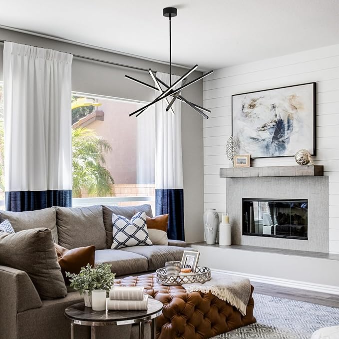 - 【DIY Styling Modern Chandelier】The black LED chandelier is composed of 6 x 31.7" light tubes, they are rotatable and can be adjusted to the style you want at any time. The simple and slim design gives this LED chandelier a more modern and elegant, look for dining room, living room, kitchen island, bedroom, foyer, and other indoor spaces.
