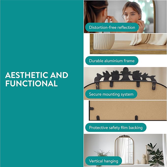 - High-Quality Construction: Constructed with a durable metal frame and strong glass, our antique gold mirror offers a distortion-free reflection, ensuring the vintage mirror lasts for years to come.