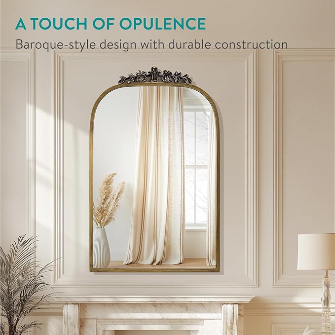 Navaris Vintage Mirror - Decorative Gold Antique Mirror - Large Brass Arched Mirrors - French Mirrors for Bathroom Wall Above Mantel or Fireplace - Ornate Baroque Victorian Style
