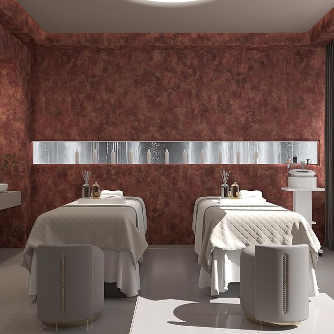 - Metallic Rusty Pattern: Red Gold concrete wallpaper looks like realistic red rusty pattern, red gold wallpaper have red gold of textured interlacing, with a sense of mess, easy to match up your office room and bathroom walls