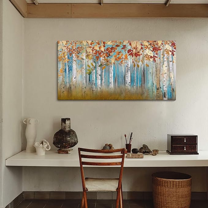 Birch Tree Canvas Wall Art Landscape Yellow Picture Wall Decor for Living Room Large Bedroom Wall Decor Above Bed Framed Artwork for Walls 24×48IN