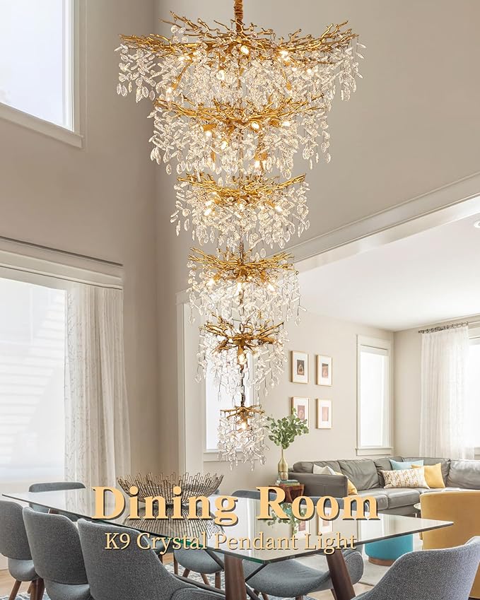 - Unique design: This contemporary crystal chandelier features stunning hand-cut crystals with a perfect combination of 320 strings of crystals to reflect light in any room perfectly. Modern chandeliers are designed for staircases, foyers, corridors, living rooms, villas and offices