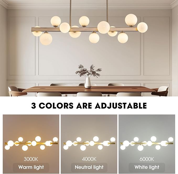 - 【Versatile Lighting Ambiance】Craft the perfect atmosphere in any room with this glass globe chandelier’s 3 selectable color temperatures. Seamlessly adjust from a warm, intimate dinner glow to a bright, invigorating morning light, enhancing every moment at home with just the right touch of illumination.