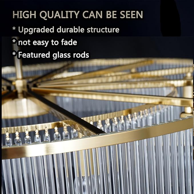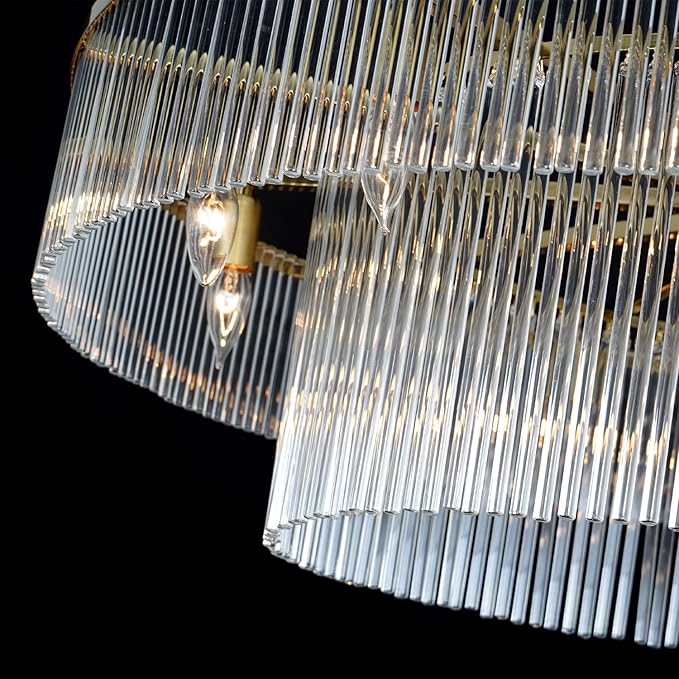 - 【Elegant Brass Chandelier】: Features a sleek brass finish frame along with 2 layers clear glass rods, This contemporary brass glass chandelier combines modern and luxury elements which brings a charming ambience and creates a romantic & warm lighting effect in your house. Absolutely will be wow at this statement piece.