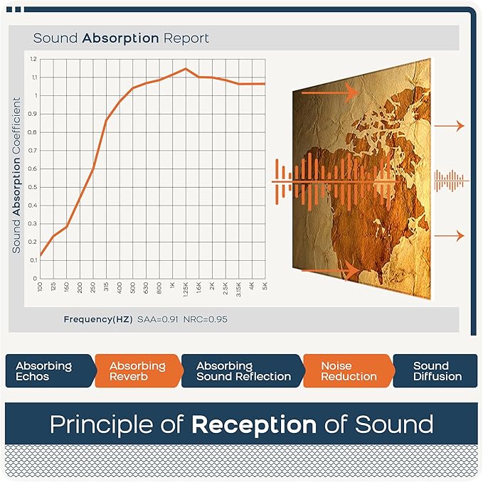 - THE ACOUSTIC TREATMENT YOU ARE LOOKING FOR -- Our Premium Acoustical wall panel exceptional sound absorption minimizing reverberations and echo. A step improvement in your sound experience and recordings and room decoration. For home & professional studios, home theaters & more.