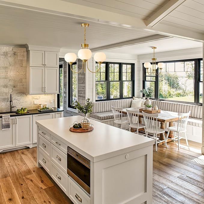 - 【Modern Gold Chandelier】The modern vintage chandelier is composed of milk white globe glass and brass gold metal frame, with a delicate and elegant design. The unique milk glass makes the lighting appear soft and warm, adding a comfortable and romantic atmosphere to your space. Widely applicable to scenarios such as restaurant, bedroom, kitchen, dining room, foyer, etc.
